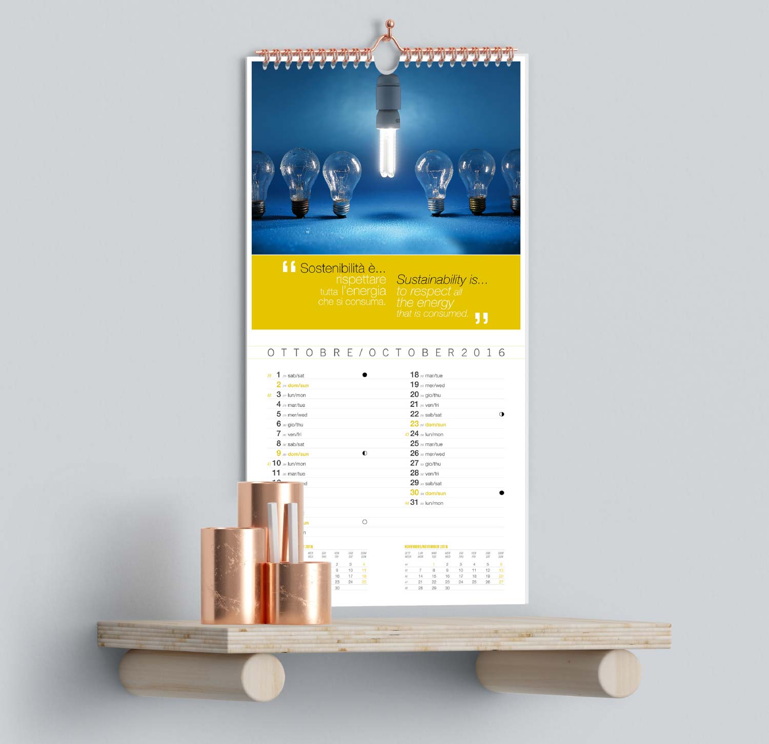 Il risultato è un calendario che propone un vademecum di sani principi da perseguire e buone pratiche che ci ricordano il nostro senso di responsabilità rispetto all’ambiente in cui viviamo.