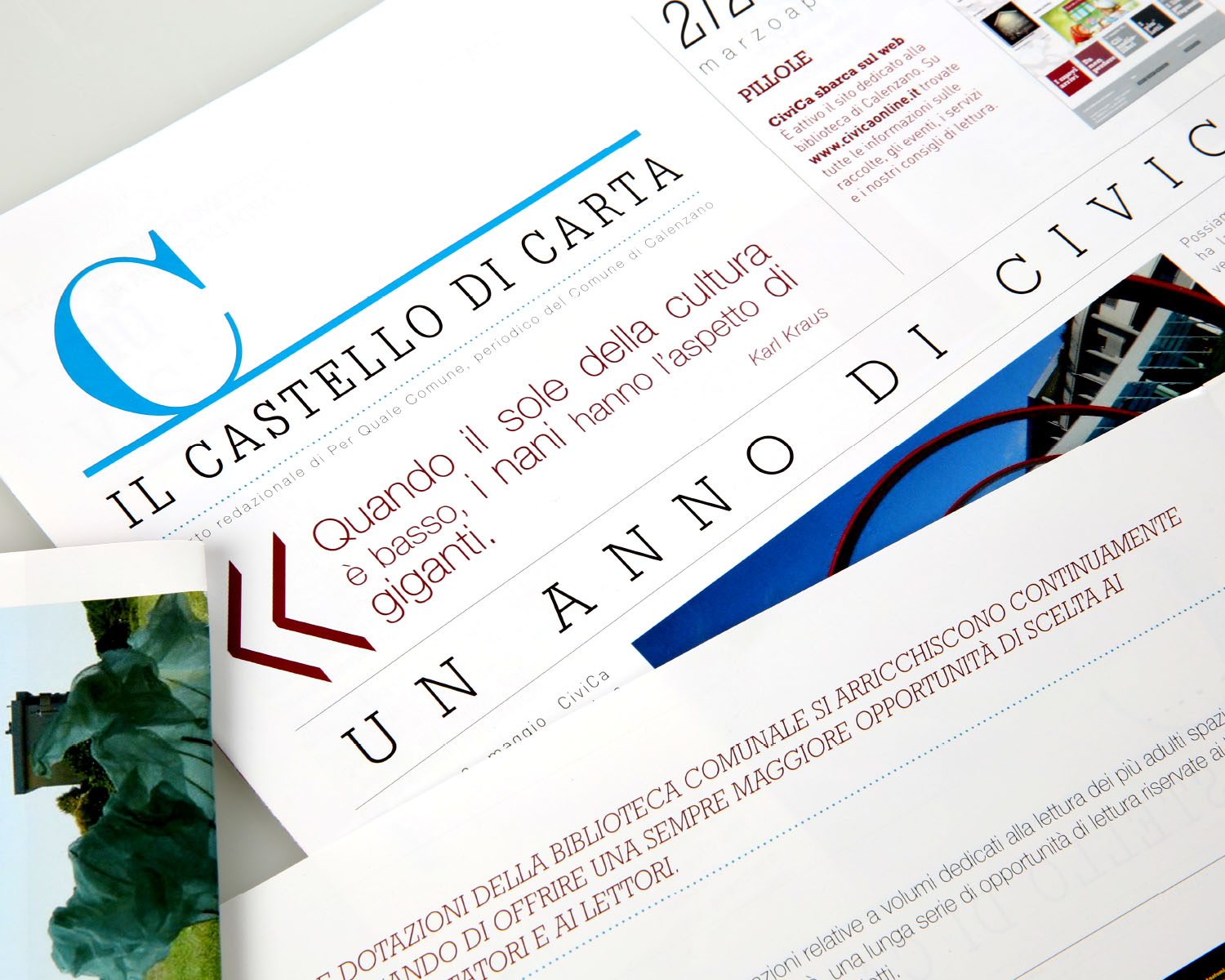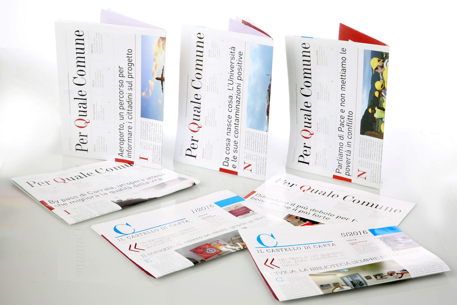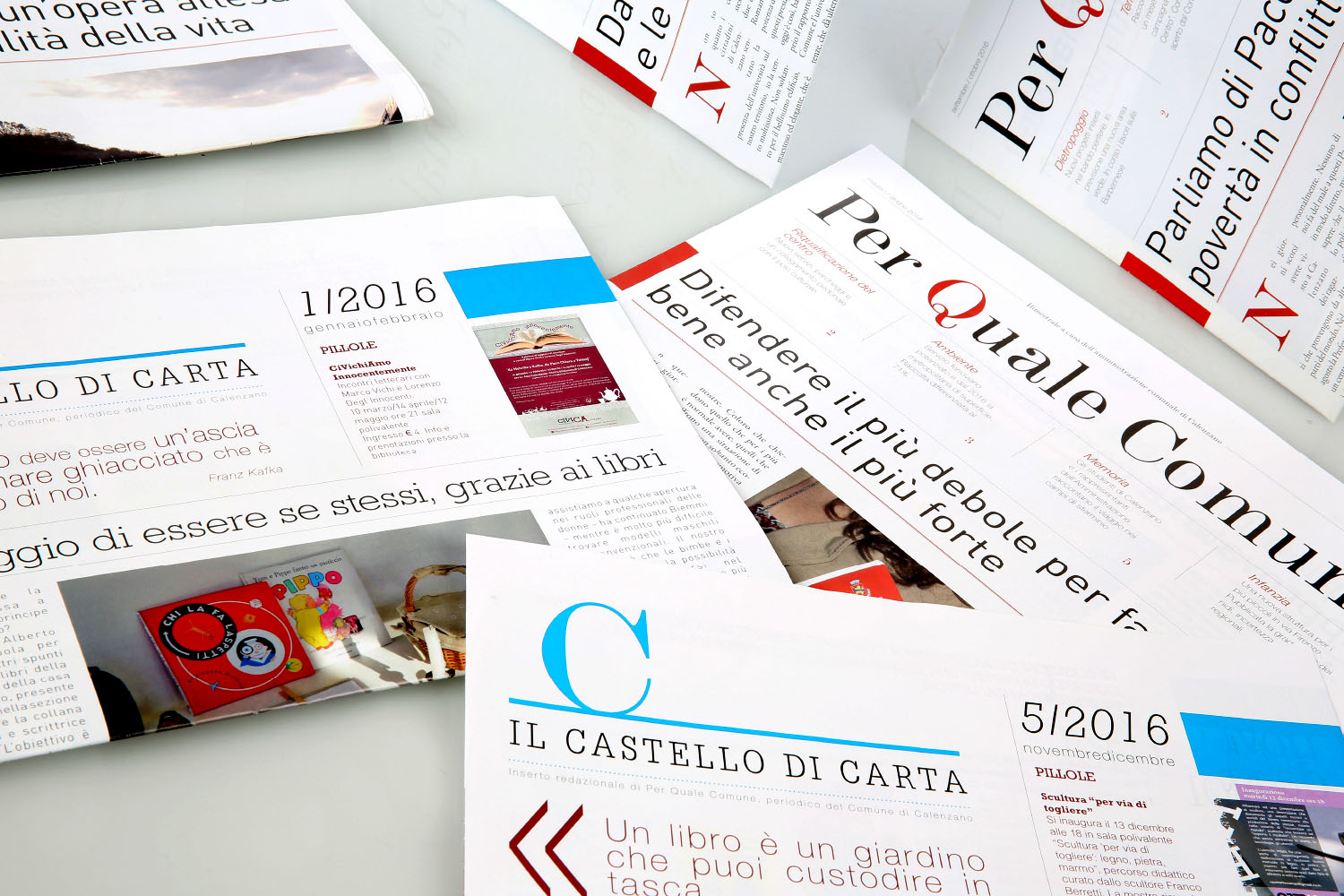 Per circa dieci anni mi sono occupata della progettazione grafica del magazine periodico del Comune dal titolo “Per Quale Comune” e dell’inserto culturale legato al lavoro della Biblioteca Civica, “Il Castello di Carta”.