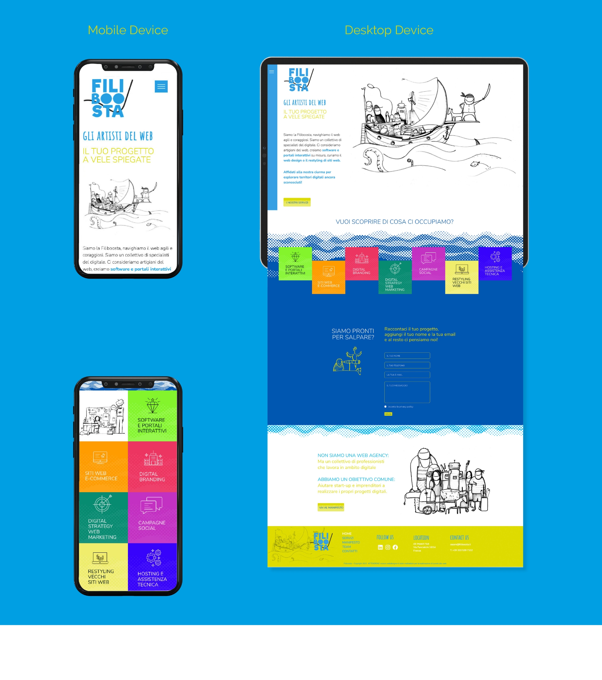 Tutta la brand identity e la digital branding, volutamente unconventional, ruota sul concetto di agilità che è alla base della mission del collettivo: una filiboosta di artisti del web, la metafora del “covo dei pirati” nelle profondità marine per raccontare il lavoro degli sviluppatori.