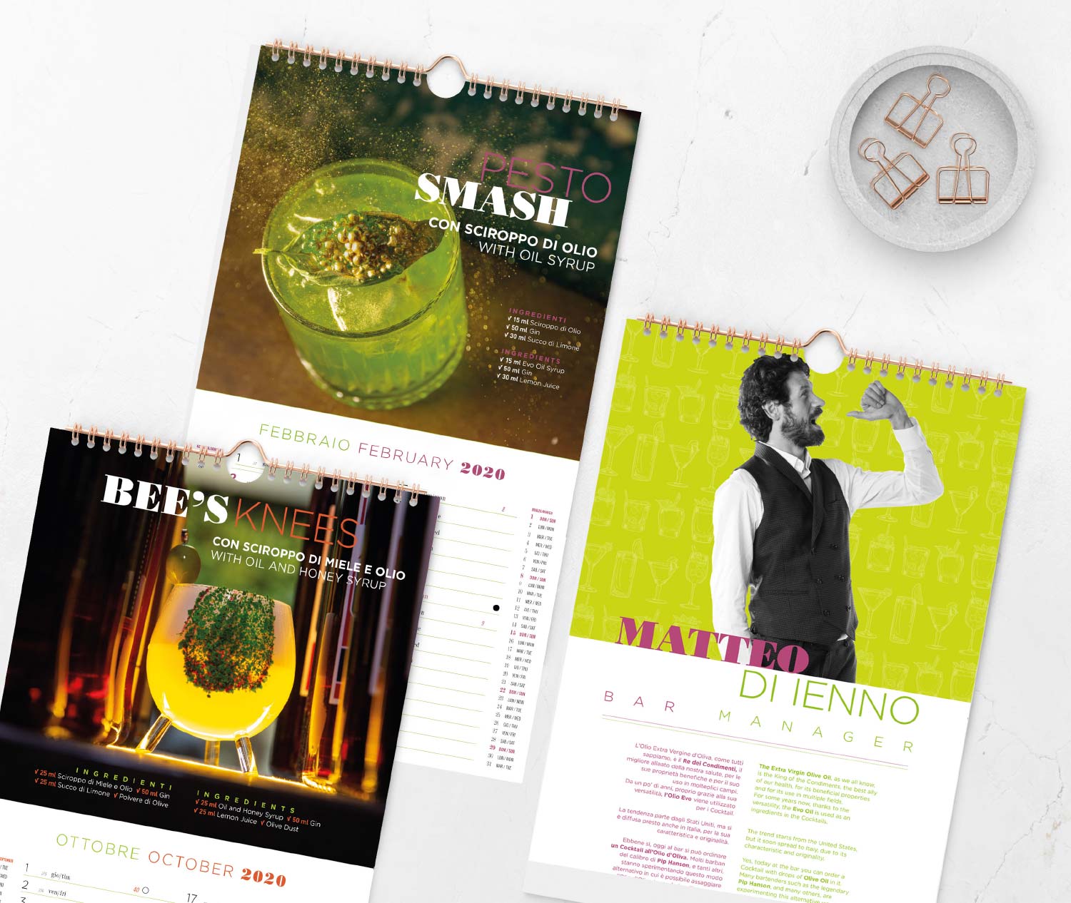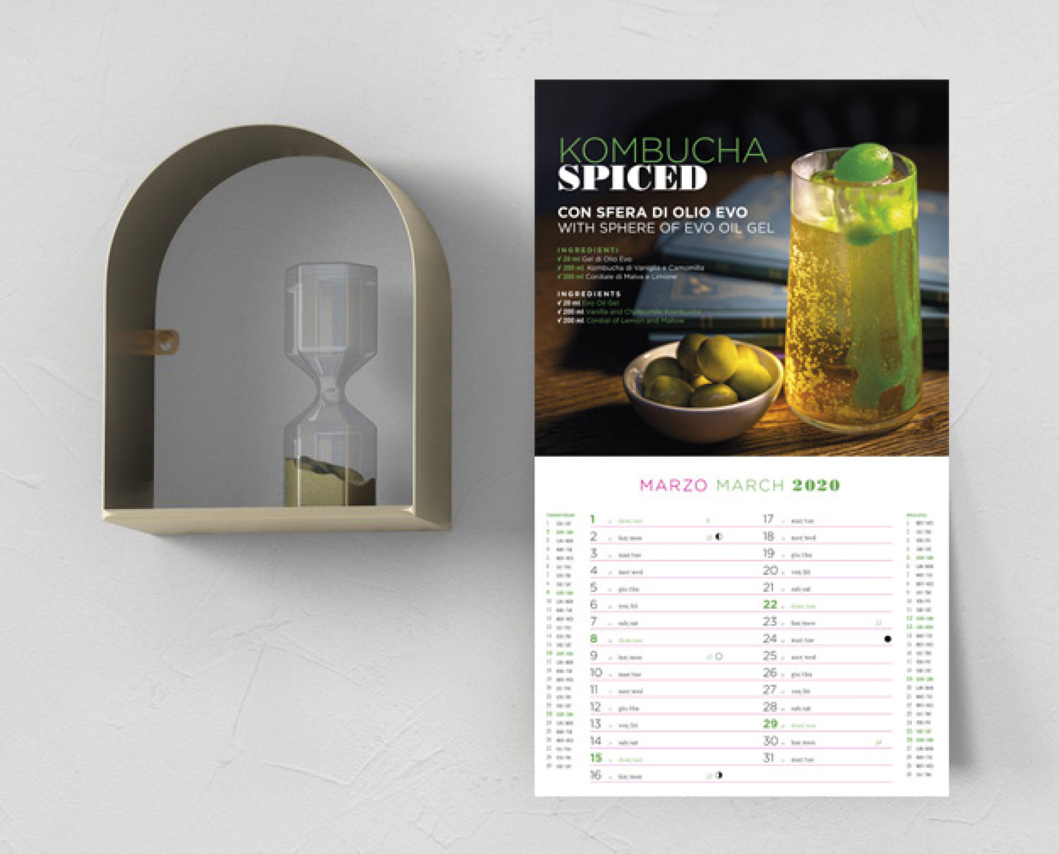 Per il calendario 2020 abbiamo inventato insieme a Matteo di Ienno, bar manager del Locale Firenze, dodici cocktail a base di Olio d’Oliva seguendo una tendenza che per la sua originalità è già molto diffusa negli Stati Uniti. Abbiamo poi realizzato con Giovanni Corti, fotografo di Studart, uno shooting fotografico ambientando i cocktail in set esclusivi. Il risultato è stato un viaggio raffinato alla scoperta del gusto, raccontato con colore e brio.