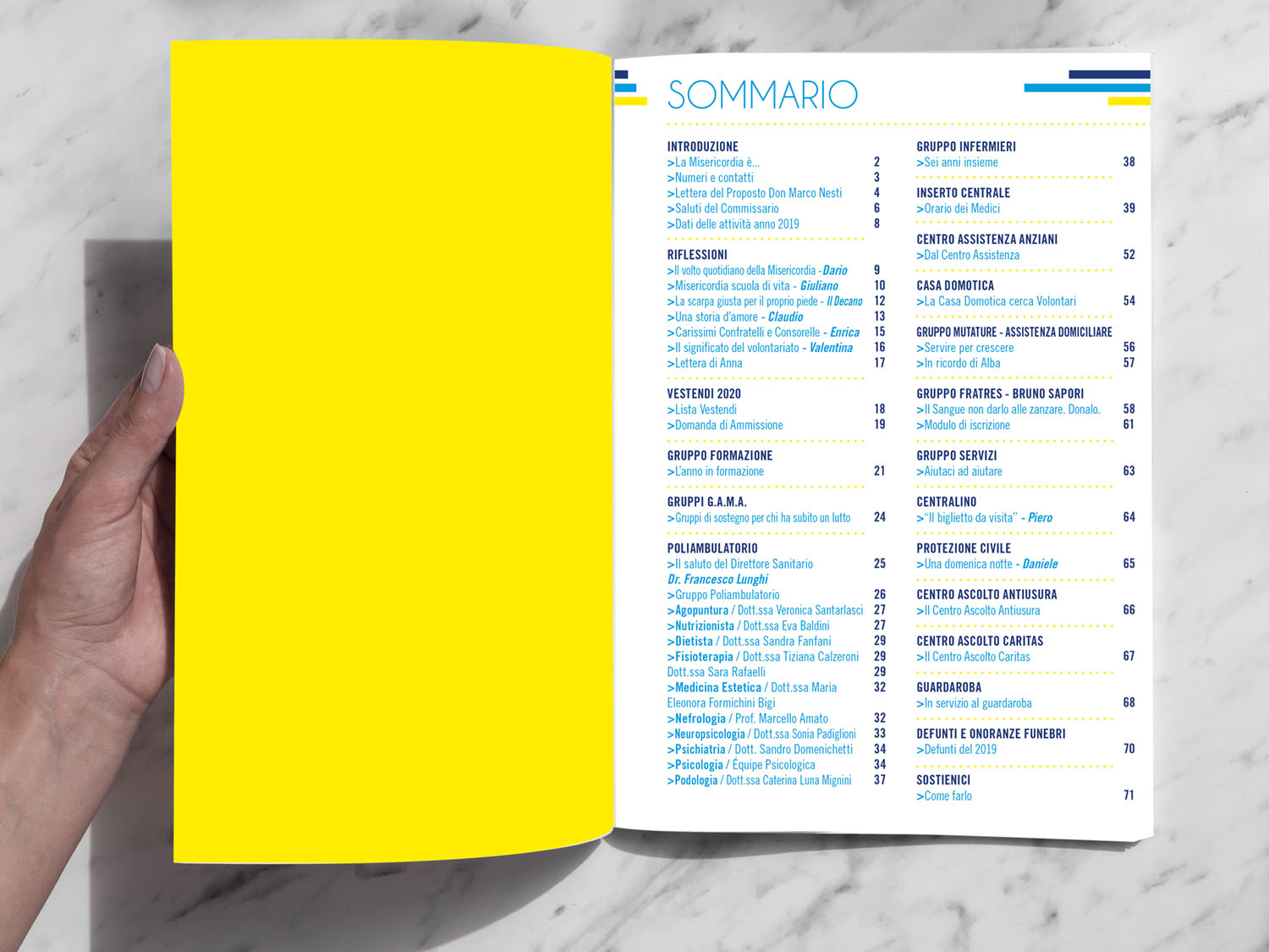 Un altro passo importante fatto insieme all’Ufficio Comunicazione è stato quello di creare un magazine che raccontasse le attività della Misericordia, un progetto dove da un lato i volontari potessero riconoscersi e dall’altro dove i nuovi utenti potessero comprendere questa realtà attraverso foto e testimonianze di chi ha deciso di investire nel progetto.