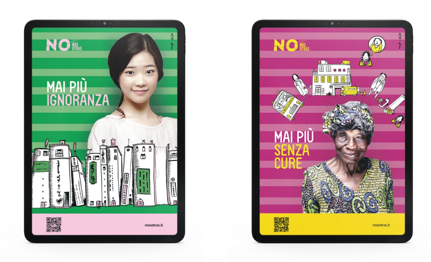 Insieme all’illustratore Giacomo Cheli, ho sviluppato questo concept che fonde un mix di linguaggi: la grafica, l’illustrazione, i colori a contrasto, per accompagnare “le lotte” dell’Associazione e raccontare le paure, i bisogni e il grande grido di denuncia contro le discriminazioni, la solitudine, l’ignoranza e la violenza che contraddistinguono questi nostri tempi.