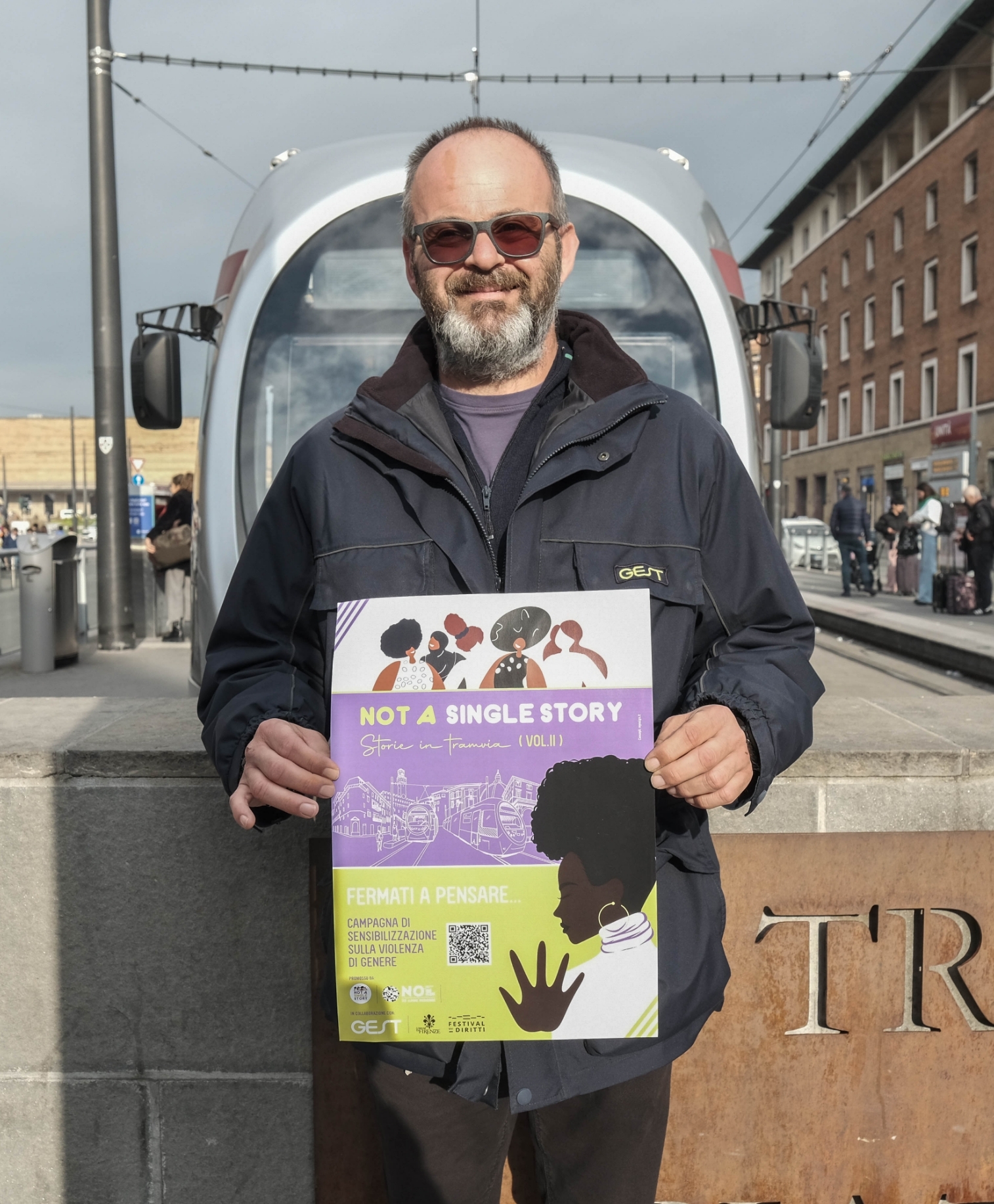 La campagna è in collaborazione con Gest, per questo le storie che raccontiamo sono ambientate sulla tramvia fiorentina. Quante se ne possono ascoltare, o raccontare, in un viaggio dalla fermata Villa Costanza a Porta Prato-Leopolda, ad esempio, e se avete cinque minuti ne potrete ascoltare ben quattro.