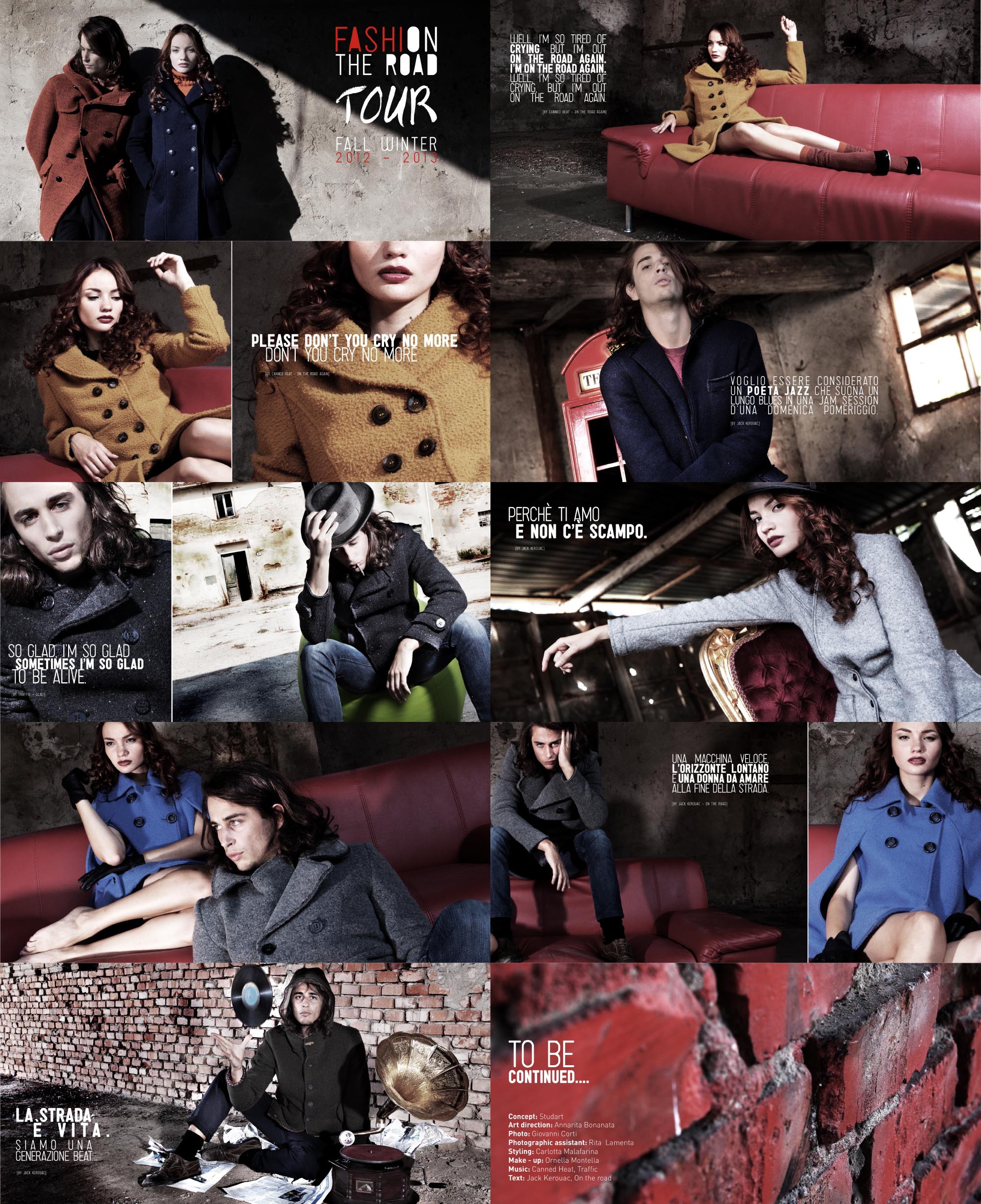 Le atmosfere di questo progetto sono contaminate, grunge e prendono spunto dagli artisti della beat generation. Come moderni bohemienne, i nostri attori vestono i capi del marchio in modo anticonformista, inscenando una storia d’amore e di libertà. Sono accompagnati dai versi celebri di Kerouac e del suo celebre libro On the road.